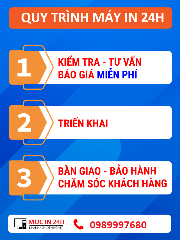MỰC IN 24H luôn thực hiện quy trình đúng chuẩn để đảm bảo luôn mang lại hiệu quả cho khách hàng ở mức cao nhất: